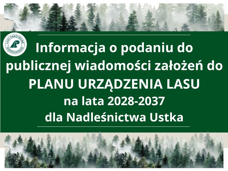 o możliwości wglądu, zapoznania się oraz zgłaszania uwag i wniosków do „Założeń do planu urządzenia lasu wraz z programem ochrony przyrody i prognozą oddziaływania tego planu na środowisko i obszary Natura 2000 dla Nadleśnictwa Ustka na lata 2028-2037”, ujętych w protokole z Narady Urządzeniowej.